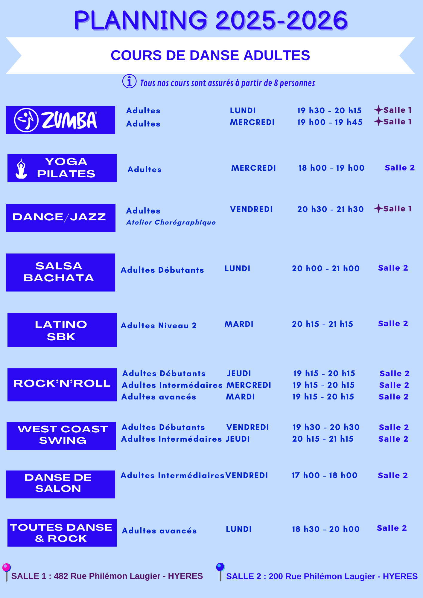 Nous proposons des cours d'essai gratuit dans toutes les disciplines qui peuvent vous intéresser. N'hésitez pas à venir essayer nos cours !
